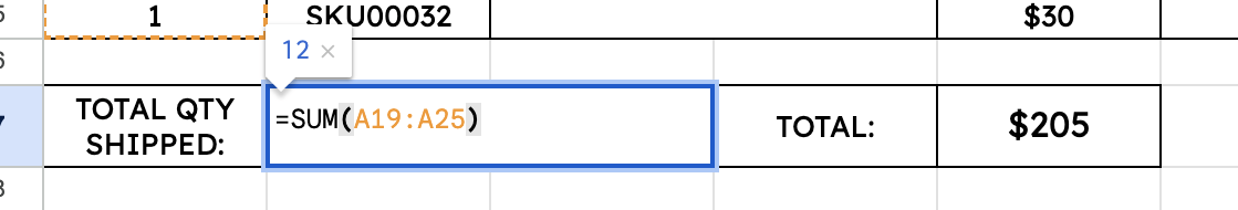 You can use the =SUM() formula to calculate totals automatically. In the “Total Price” column, multiply the quantity and price per item using a formula like =B2*C2. Use =SUM(D2:D10) in a separate cell to calculate the total for all items in the “Total Price” column.