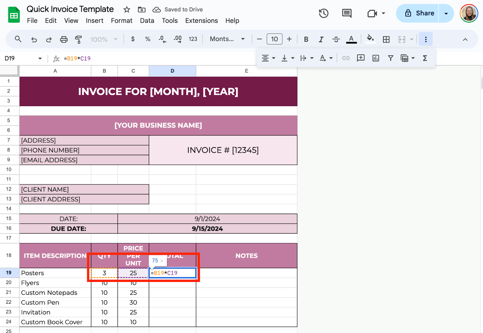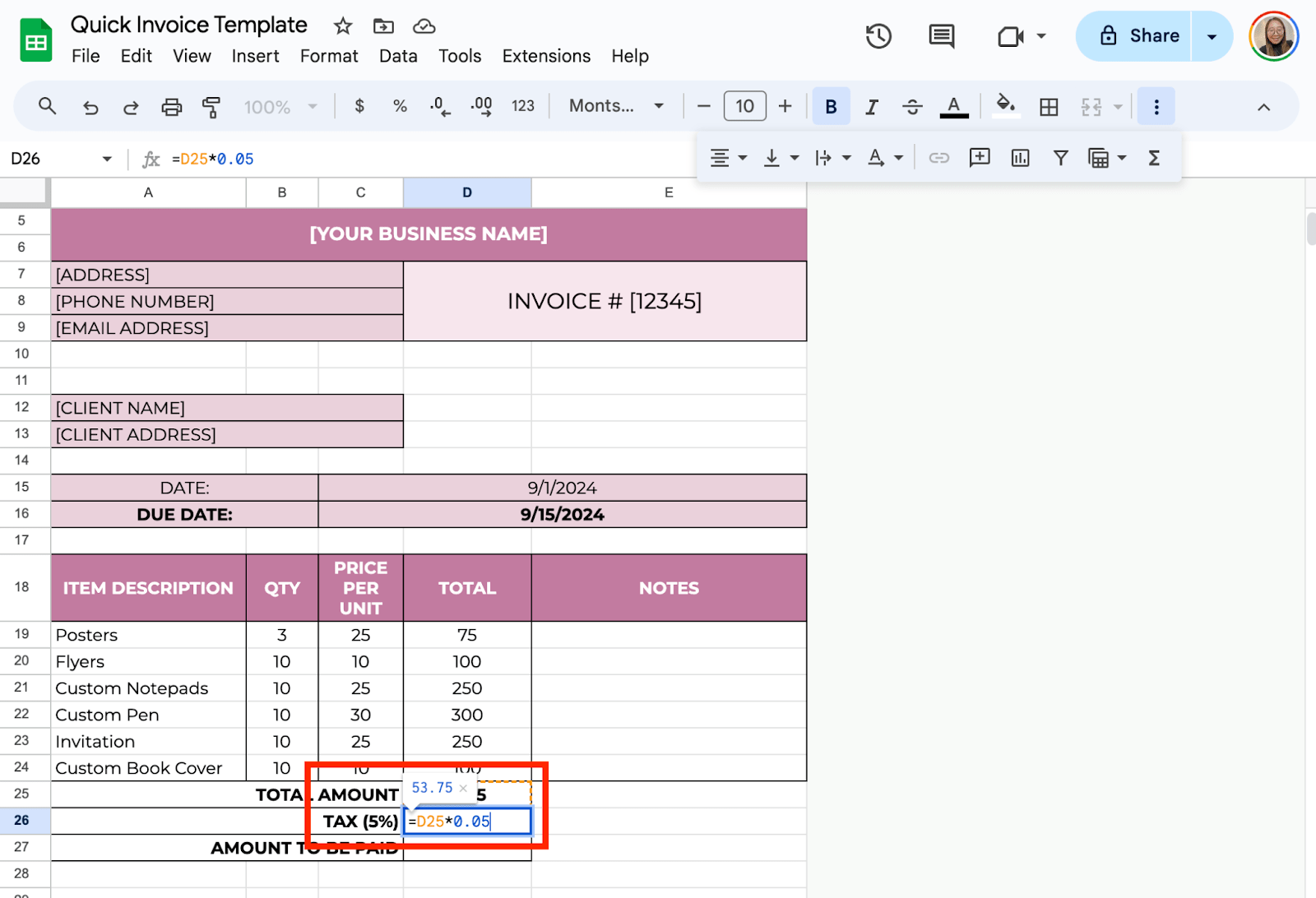 How to Create a Quick Invoice Template with Auto-calculations in Google Sheets