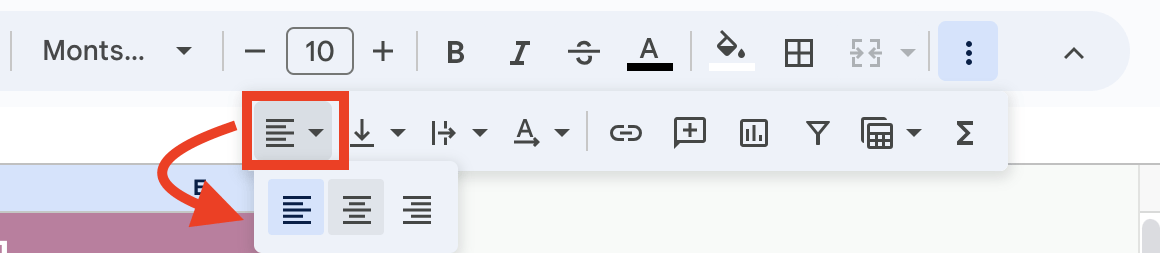 • Center-align the column headers (Item Description, Quantity, etc.) for a cleaner layout. Select the three dots and click the icon below: